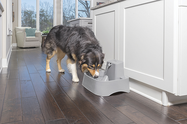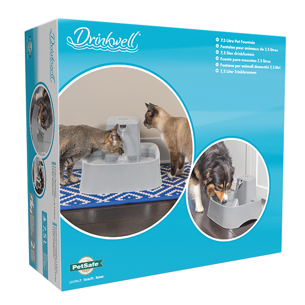 La fontaine Drinkwell® de 7,5 litres est spécifiquement conçue pour garantir une hydratation saine et fraîche tout au long de la journée. Une molette non accessible par l’animal permet de régler le débit du flux d’eau et choisir ainsi un fonctionnement plus ou moins silencieux et rapide. Il est également possible de couper complètement la cascade d’eau, la circulation de l’eau restant assurée par la pompe.