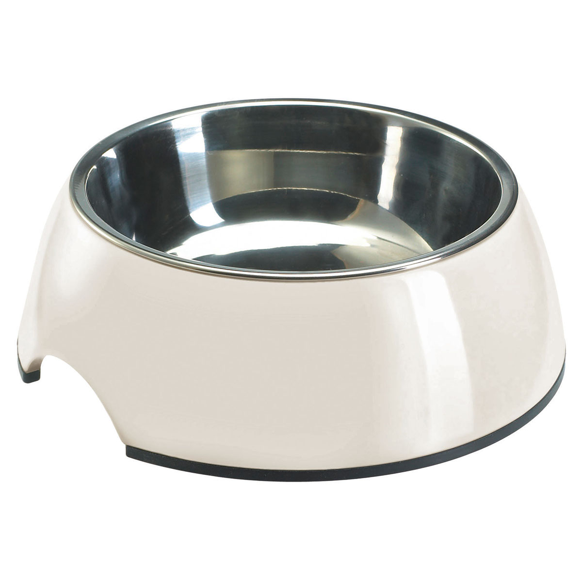 Gamelle mélamine, bol en acier inox. Elle peut passer au lave-vaisselle.