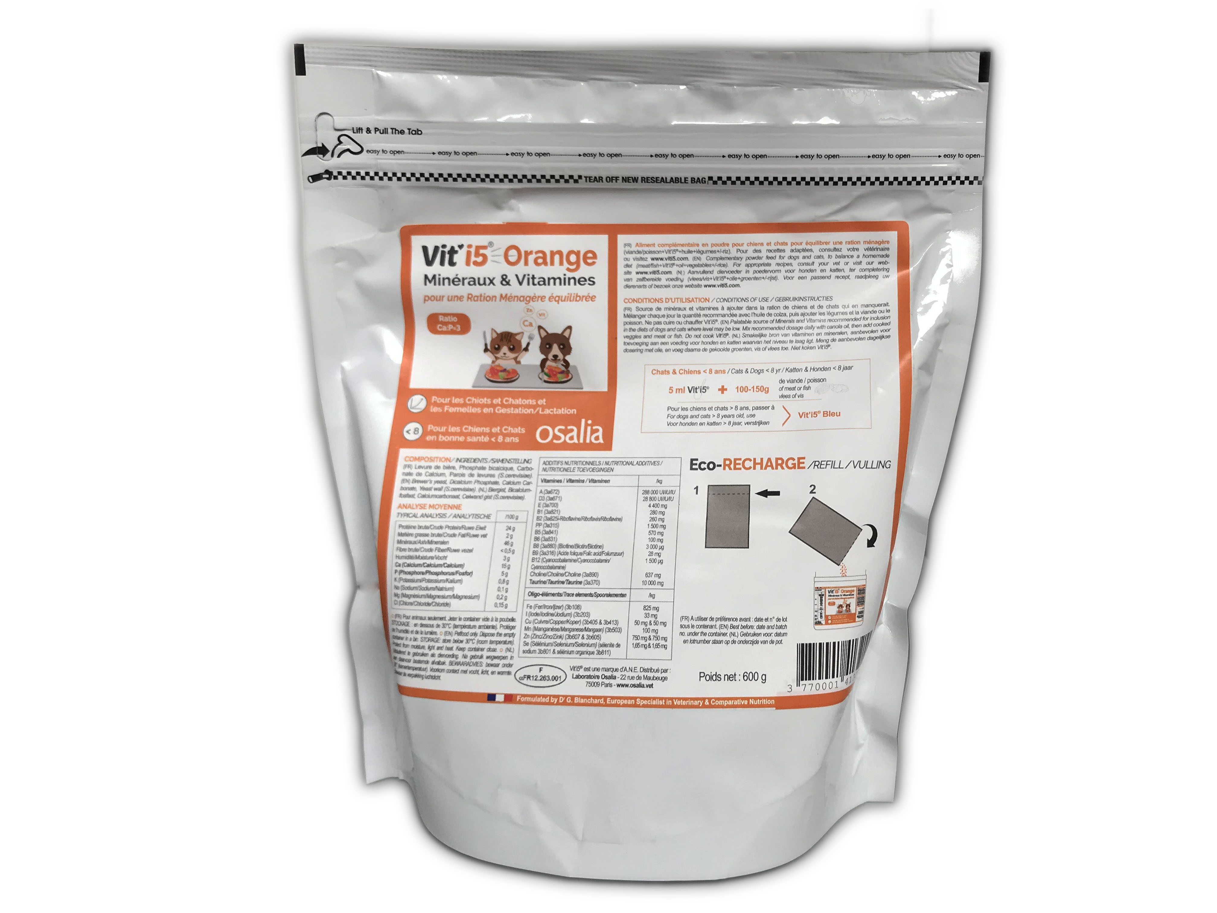 Aliment complémentaire d'apport minéral et vitaminé pour chien adulte :